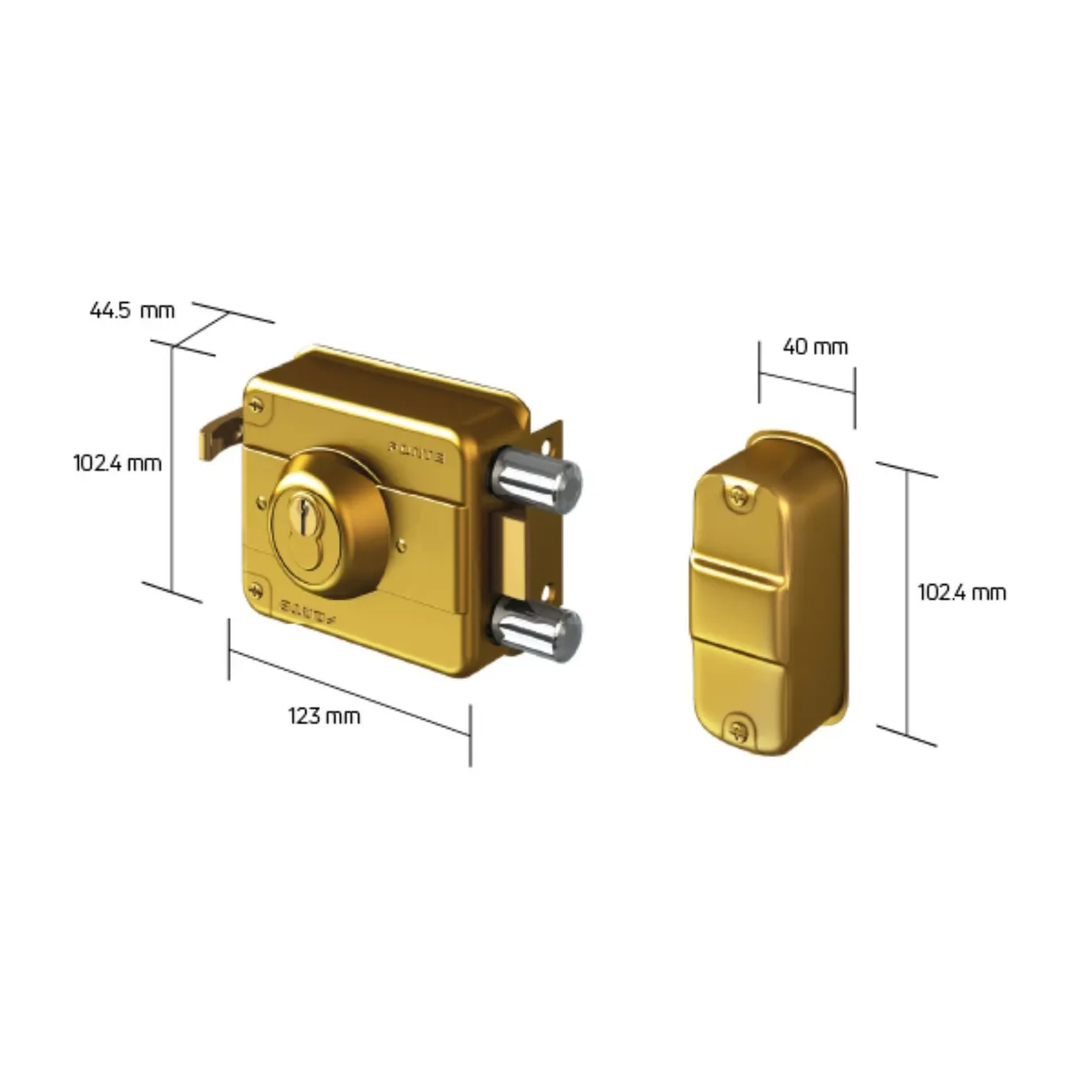 La Cerradura de Sobreponer Clásica C-240 Dorado Forte es reversible, lo que significa que se puede instalar en puertas que abren hacia la derecha o hacia la izquierda. Además, su largo de 6 cm y su ancho de 8.5 cm la hacen ideal para una variedad de puertas. Su material de acero la hace resistente a la corrosión y al desgaste, asegurando una larga vida útil.