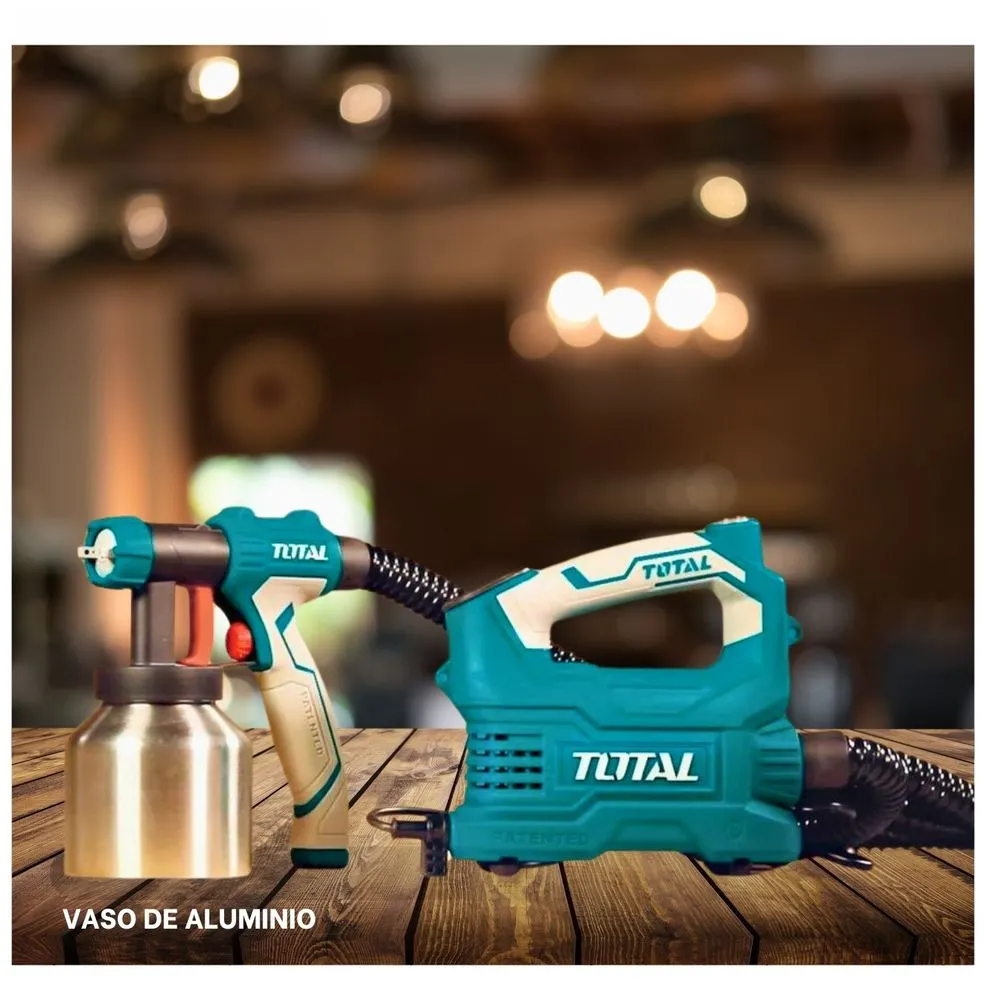 Una pistola para pintar con una potencia de 550 vatios, un vaso de aluminio con capacidad de 850 ml y podría ser una herramienta eficaz para aplicaciones de pintura en proyectos de bricolaje o pequeñas tareas de pintura.